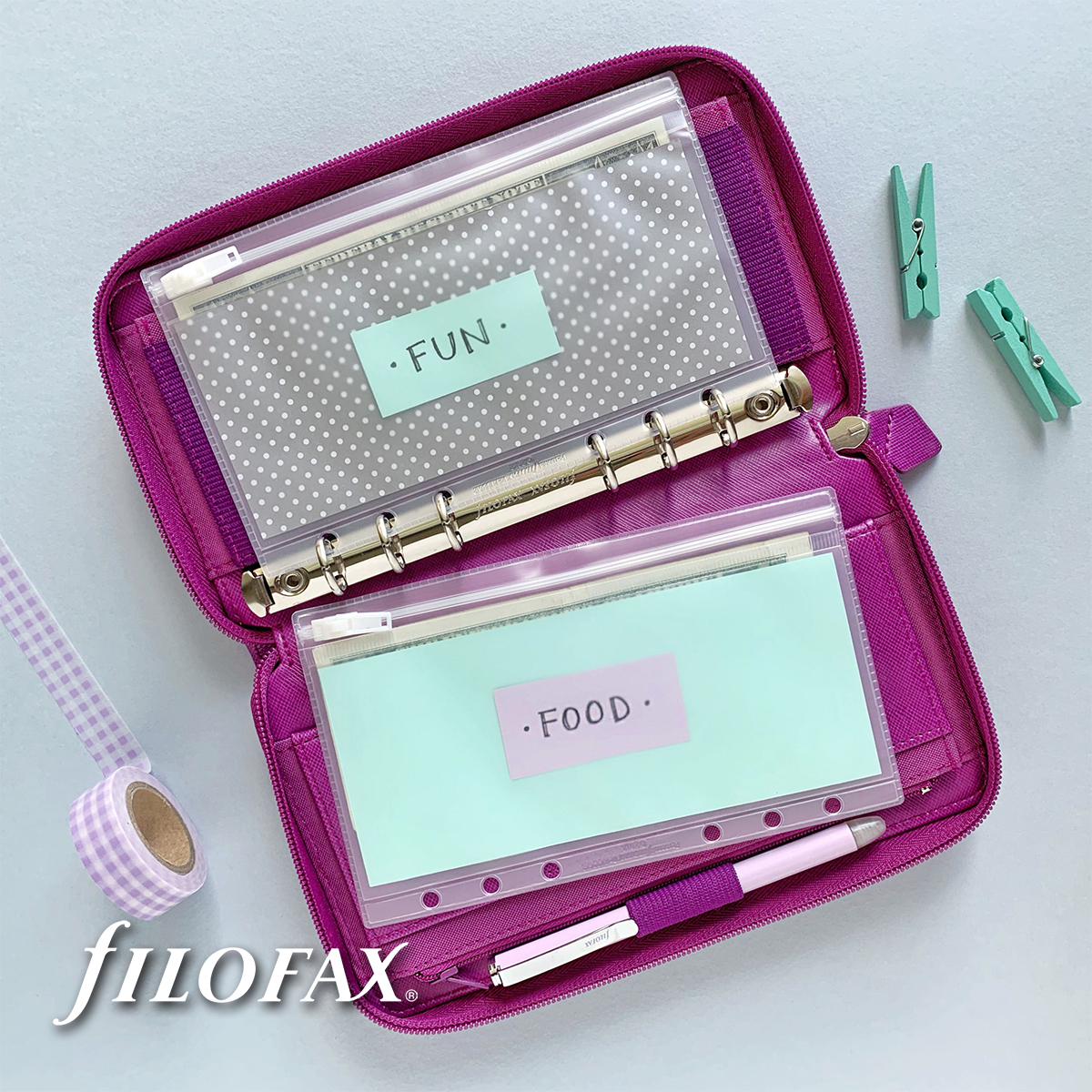 Filofax Saffiano Personal Compact Zip Málna
