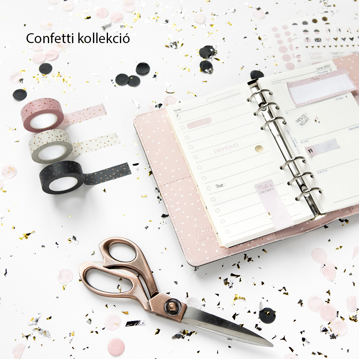 Buli az élet! A játékos apró arany minta szikrányi örömmel fűszerezi meg a hétköznapokat. A fekete és rose quartz színekben kapható Confetti kollekció elegáns kiegészítője lesz a mindennapoknak. Fedezze fel az egész kollekciót, mely számos pótlapot és kiegészítőt is tartalmaz. Kérjük, tekintse meg a kapcsolódó termékeket!