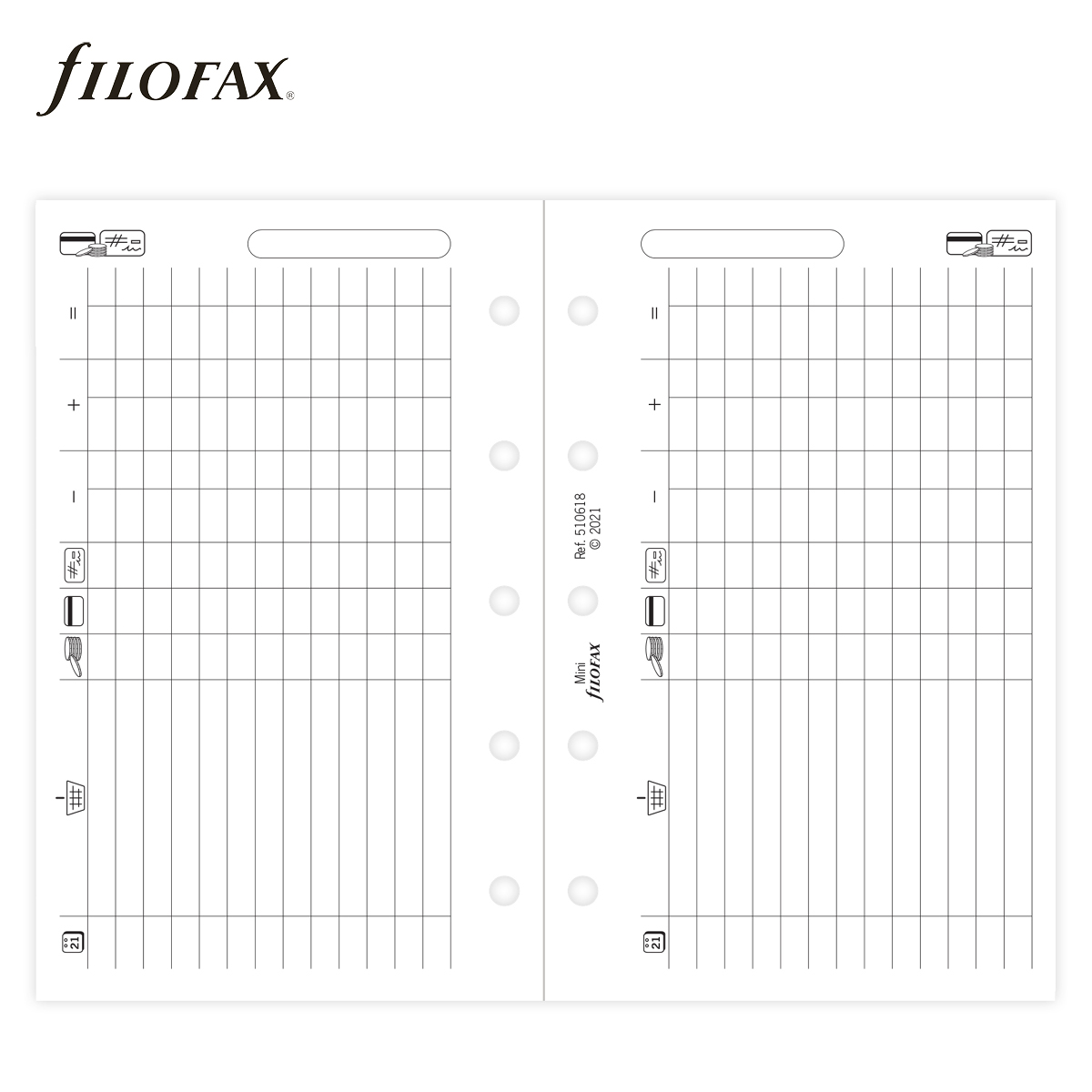 - Tervezze meg bevételeit és kiadásait részletesen, majd kövesse nyomon az eredményeket a Filofax pótlapok segítségével. Amennyiben a nyilvántartáshoz jegyzeteket kíván készíteni, használja a Filofax jegyzetlapokat.