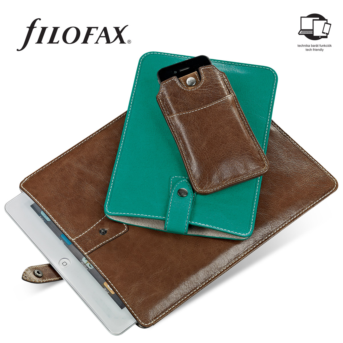 iPad, eReader, iPhone tárolására alkalmas bőr kiegészítők, valamint tárcák, tartók, neszeszerek széles választéka, könnyed stílusú, antikolt bivaly színbőrből, rusztikus varrással. Méret: 80×130×5 mm.