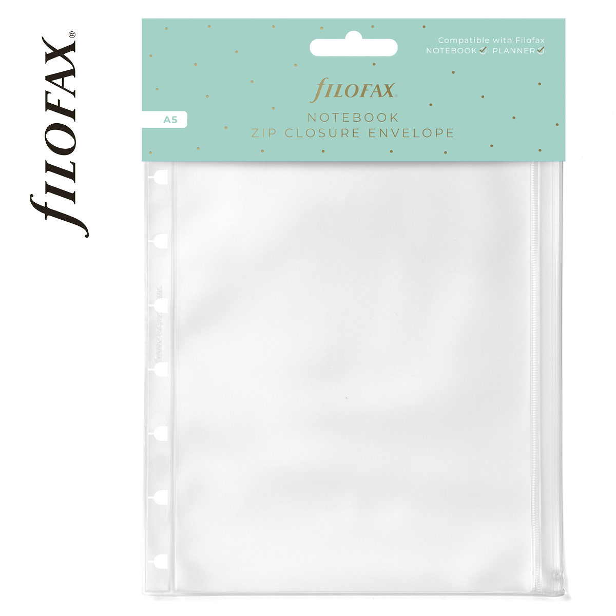 Filofax Notebookban használható, csúszózáras, műanyag boríték, papírok, kártyák és egyéb tárgyak tárolására. A Notebook spirálra fűzhető tároló segítségével megnövelheti a Filofaxban tárolt papírok, tárgyak mennyiségét és igény szerint rendszerezheti azokat. Egy igazán hasznos társ a mindennapokban.