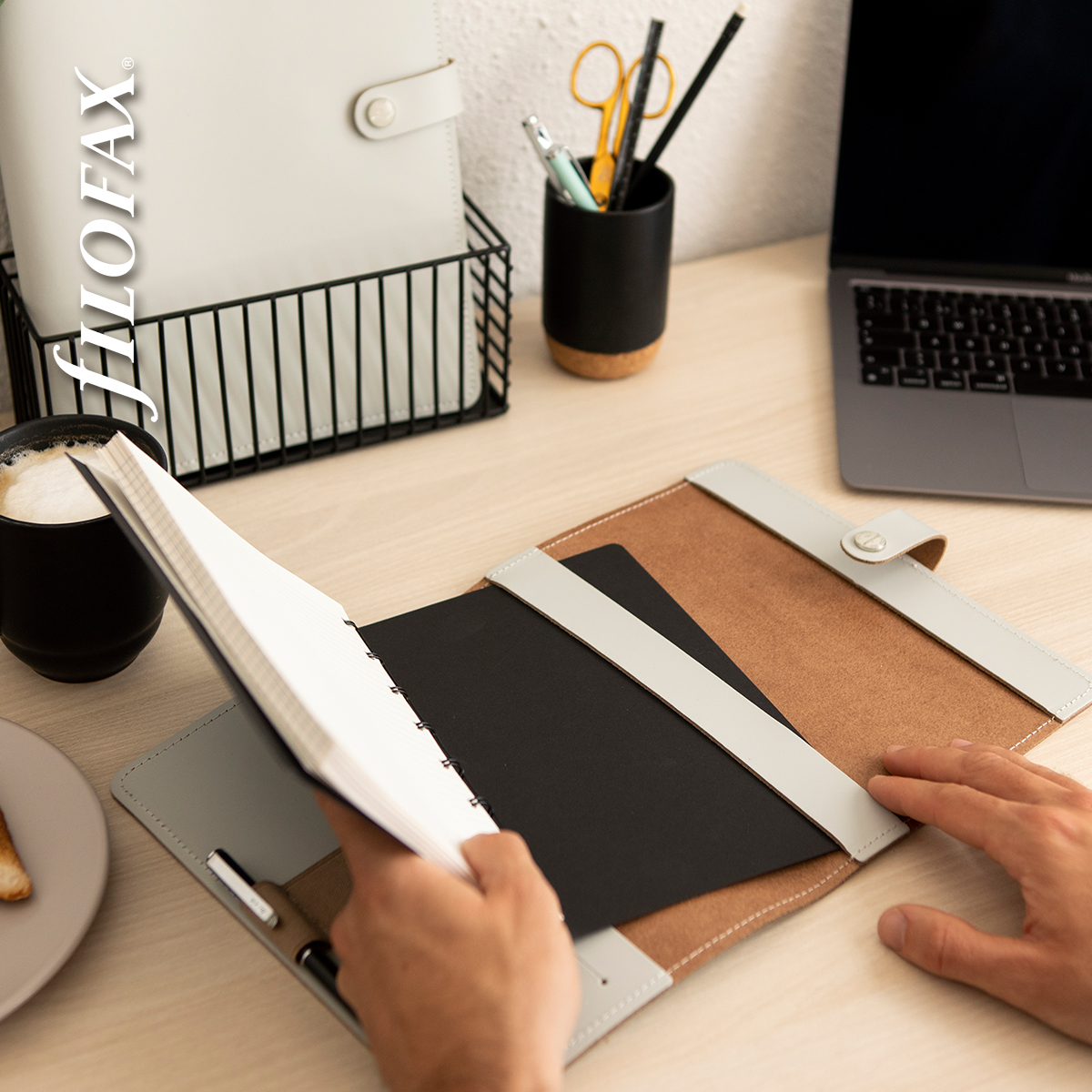 A nagy sikerű Original Filofax A5 méretű mappa változata, cserélhető lapos Notebook betéttel.