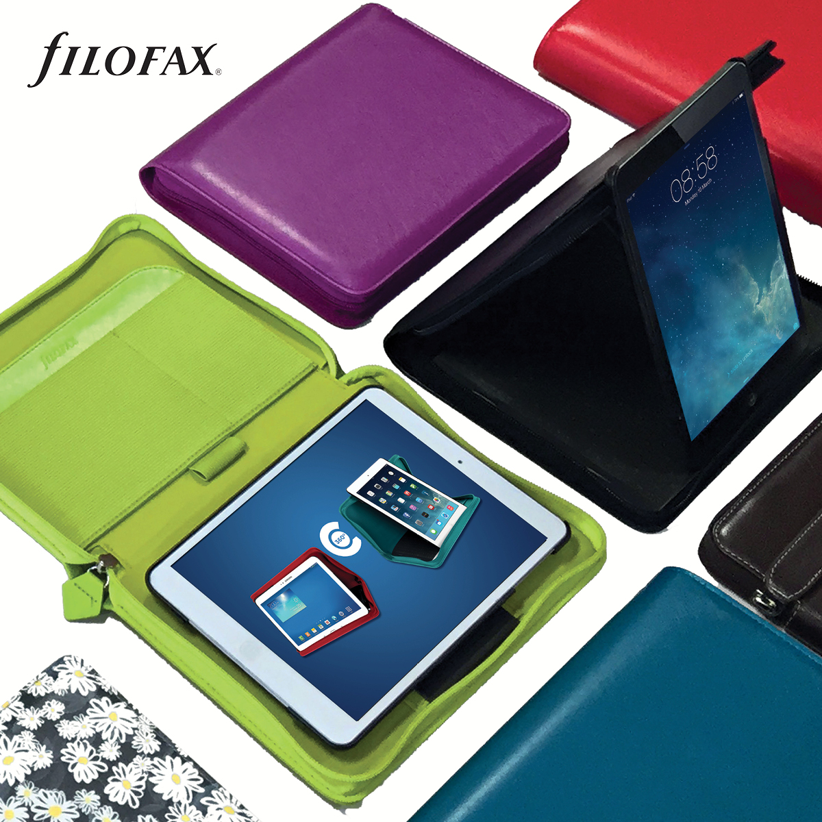 A Filofax eniTAB360 univerzális tablet tok + tartó bármely tablet készülékhez használható. Önnek csak a tablet készülék méretét kell ismernie: