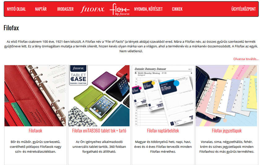 Cégünk mindent elkövet annak érdekében, hogy Ön az igényeinek legmegfelelőbb terméket választhassa. A következőkben bemutatjuk azt a néhány lépést, mellyel Ön eredményesen böngészhet oldalunkon. A folyamatot a Filofax termékkel mutatjuk be; a többi termék is hasonló módon választható ki. Kellemes időtöltést kívánunk!